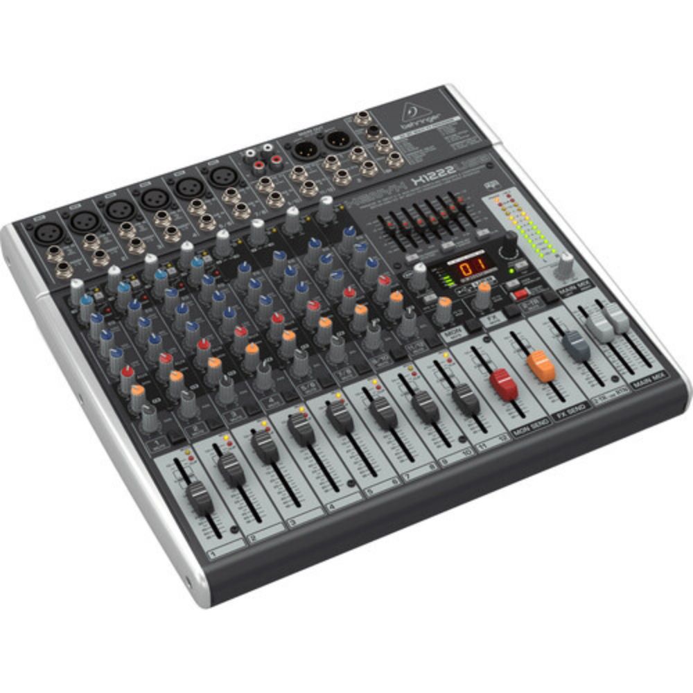 Previous Product Next ProductThe XENYX X1222USB includes two XLR main outputs and a 1/4" headphone/control room output. All channel inputs feature a 3-band British-style EQ and panning knobs, while channels 1-4 sport a single-knob compressor, a high-cut filter, and 1/4" inserts for connecting your favorite outboard gear. Along with the built-in USB/audio interface, the QX1222USB comes with all the recording and editing software needed to turn your computer system into a complete, high-performance home recording studio. The X1222USB ships with rackmount brackets for flexibility.