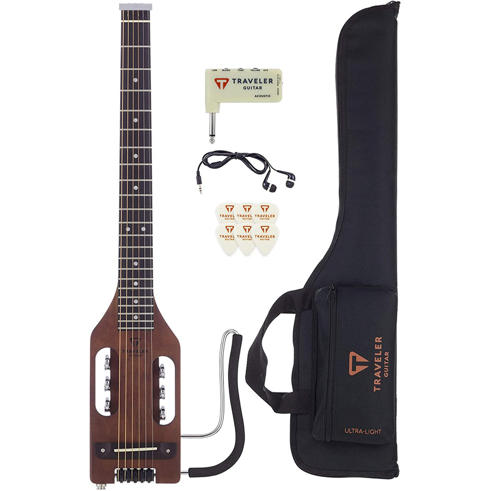 Traveler Guitar, 6-String Acoustic-Electric Guitar, Right, Antique Brown, Guitar Kit (ULA ABNS SK)
