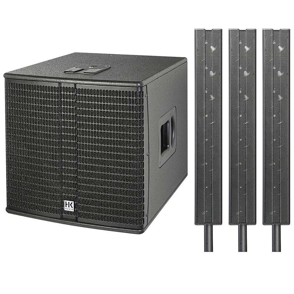 HK AUDIO E 115 SUB D 2400W 15" Powered Subwoofer Bundle with 3x HK AUDIO E 835 Mid/High Powered Column Line Array Speaker Unit