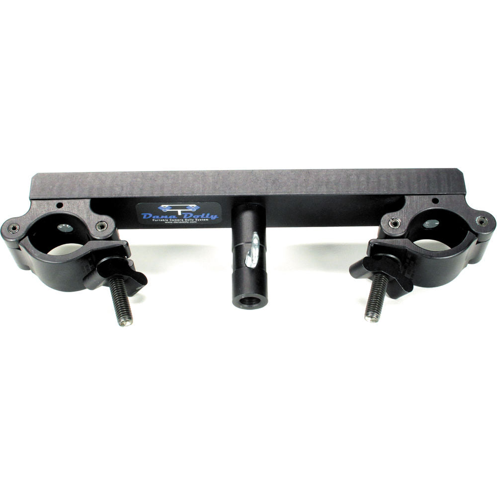 The Dana Dolly Universal Track End Bracket holds any standard size pipe from 1 1/4" to 1 1/2", or tubing with an outside diameter of 1.66" to 1.9", and provides the proper spacing for use with the Dana Dolly Portable Dolly System. It can be supported by Baby 5/8" Pin and Junior 1 1/8" receiver stands, however Junior stands are recommended for stability.